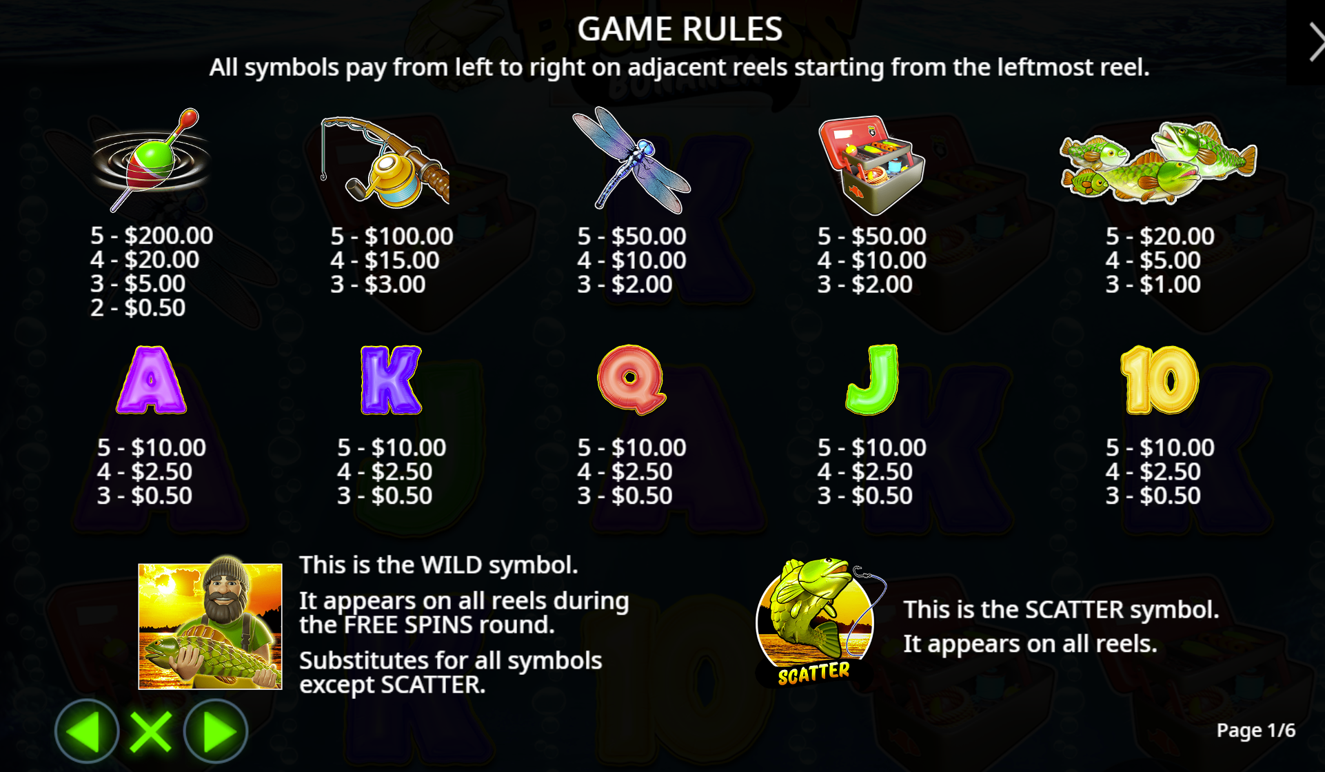 | Features | Free Spins with Collectible Money Symbols, Fisherman Wild |